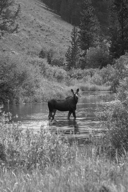 Cow Moose, Gallatin River, Yellowstone National Park White Modern Wood Framed Art Print with Double Matting by The Yellowstone Collection