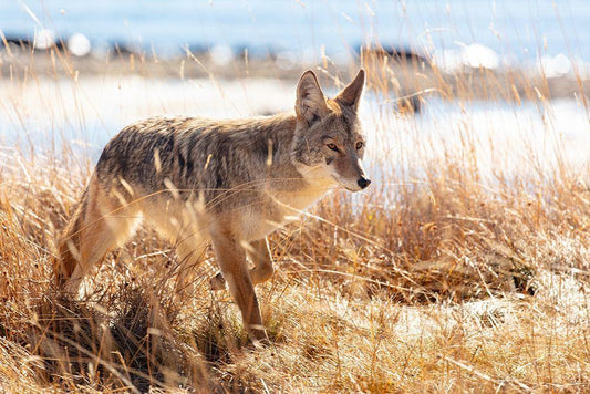 Coyote at Yellowstone Lake, Yellowstone National Park White Modern Wood Framed Art Print with Double Matting by The Yellowstone Collection