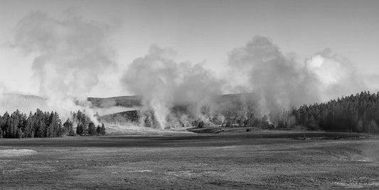 Early Morning Steam, Upper Geyser Basin, Yellowstone National Park White Modern Wood Framed Art Print with Double Matting by The Yellowstone Collection