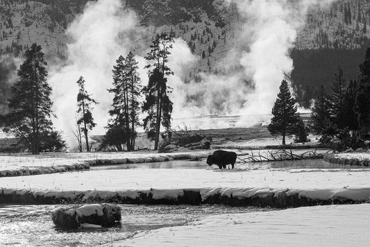 Bison, Norris Geyser Basin, Yellowstone National Park White Modern Wood Framed Art Print with Double Matting by The Yellowstone Collection