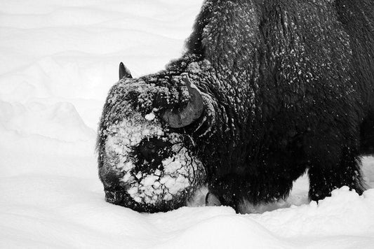 Bison Snow Plough near Rainy Lake, Yellowstone National Park White Modern Wood Framed Art Print with Double Matting by Renkin, Diane