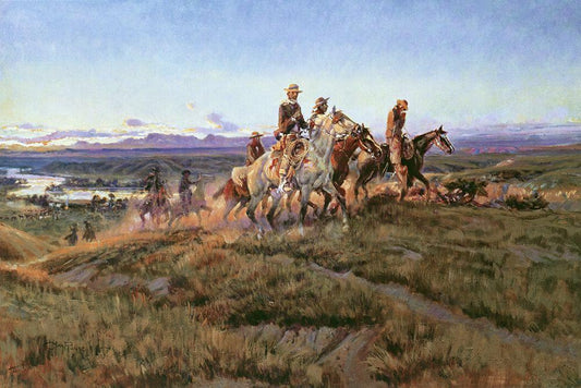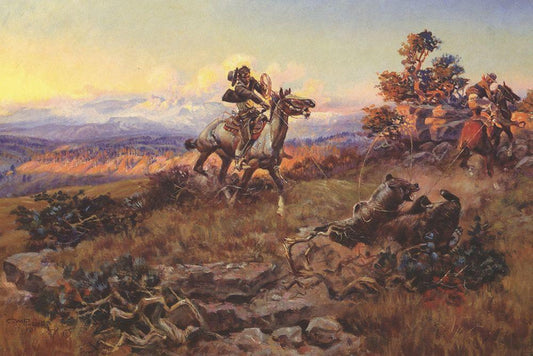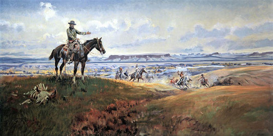 Riding Line White Modern Wood Framed Art Print with Double Matting by Russell, Charles Marion