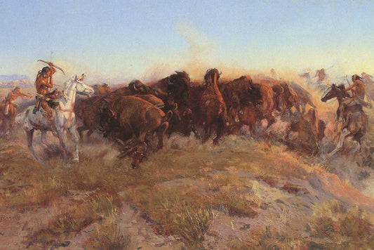 White Mans Buffalo White Modern Wood Framed Art Print with Double Matting by Russell, Charles Marion