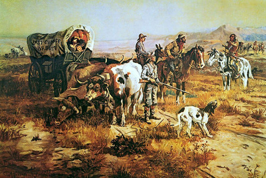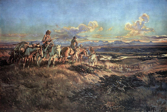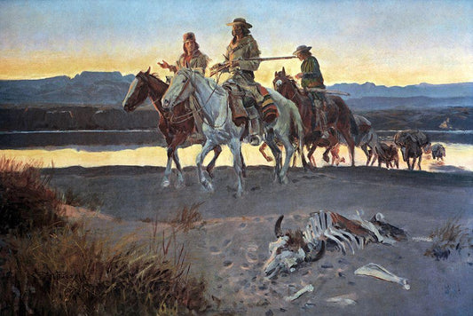 When Guns Were Their Passports White Modern Wood Framed Art Print with Double Matting by Russell, Charles Marion