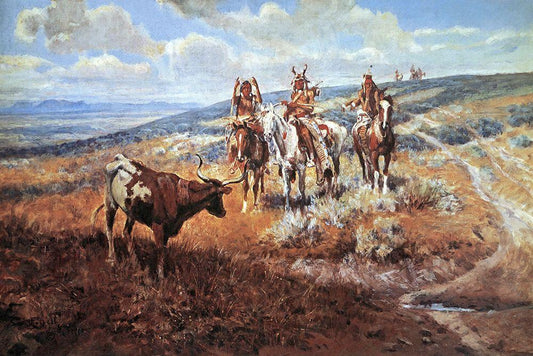 Return of the Horse Thieves White Modern Wood Framed Art Print with Double Matting by Russell, Charles Marion