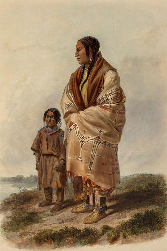Dacota woman and Assiniboin girl White Modern Wood Framed Art Print with Double Matting by Bodmer, Karl