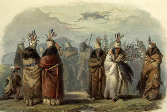 Dance of the Mandan women White Modern Wood Framed Art Print with Double Matting by Bodmer, Karl
