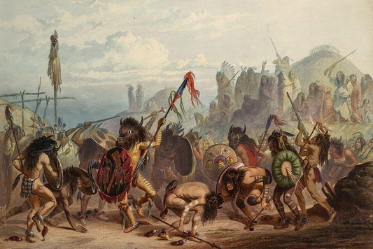 Bison dance of the Mandan indians White Modern Wood Framed Art Print with Double Matting by Bodmer, Karl