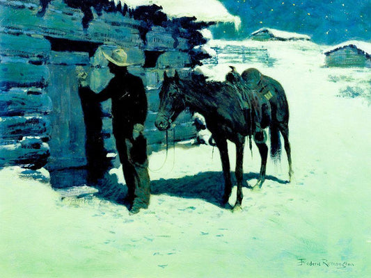 The Belated Traveler White Modern Wood Framed Art Print with Double Matting by Remington, Frederic