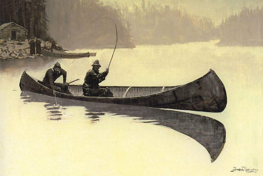 Trout Fishing in Canada White Modern Wood Framed Art Print with Double Matting by Remington, Frederic