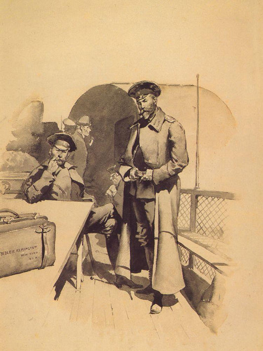 Two Officers are Watching You White Modern Wood Framed Art Print with Double Matting by Remington, Frederic
