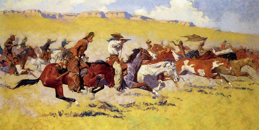 Fight for the Stolen Herd White Modern Wood Framed Art Print with Double Matting by Remington, Frederic