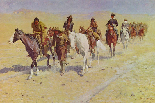 Pony Tracks in the Buffalo Trails White Modern Wood Framed Art Print with Double Matting by Remington, Frederic