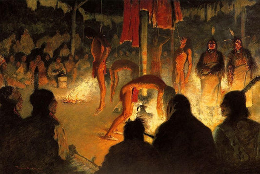 The Sun Dance White Modern Wood Framed Art Print with Double Matting by Remington, Frederic