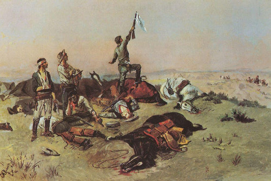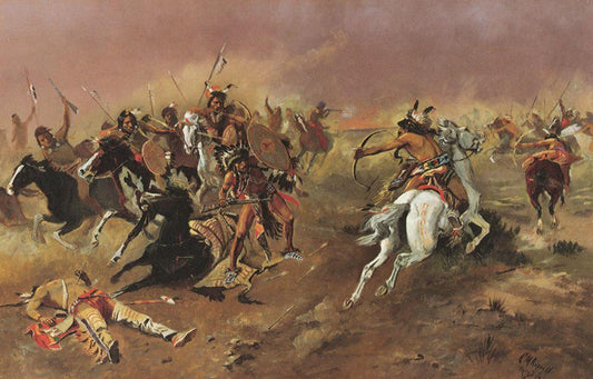 Duel to the Death White Modern Wood Framed Art Print with Double Matting by Russell, Charles Marion