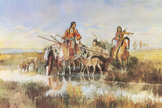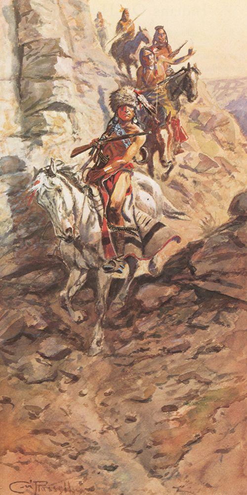 Indian Scouting Party White Modern Wood Framed Art Print with Double Matting by Russell, Charles Marion