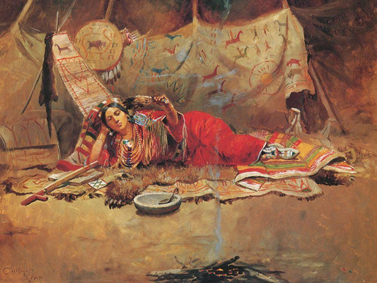 Indian Women with Travois White Modern Wood Framed Art Print with Double Matting by Russell, Charles Marion