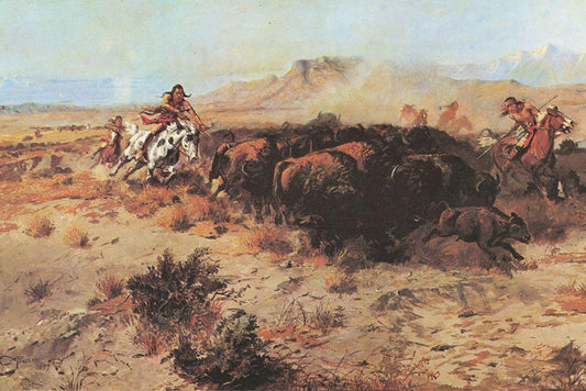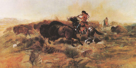 Pablo Allard Buffalo Drive White Modern Wood Framed Art Print with Double Matting by Russell, Charles Marion