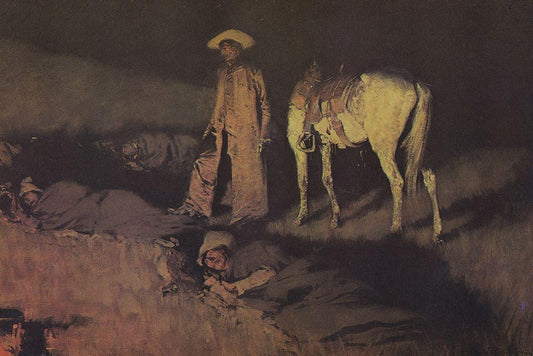 In From the Night Herd White Modern Wood Framed Art Print with Double Matting by Remington, Frederic