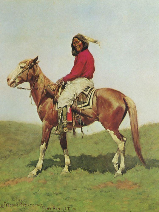 Indian Warrior on Horse-Fort Reno White Modern Wood Framed Art Print with Double Matting by Remington, Frederic