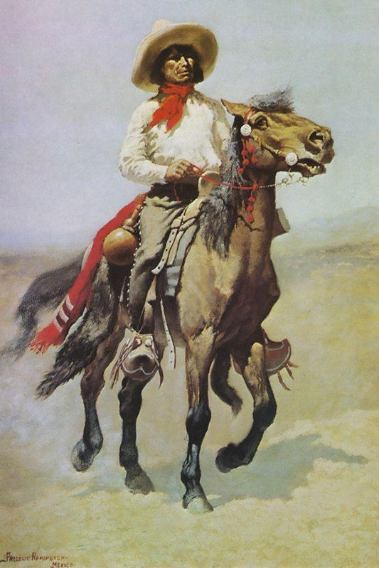 Mexican Cowboy on Horseback with Trappings White Modern Wood Framed Art Print with Double Matting by Remington, Frederic