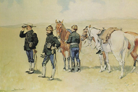 The Scouts White Modern Wood Framed Art Print with Double Matting by Remington, Frederic