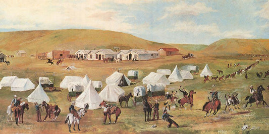 Cowboy Camp During the Roundup White Modern Wood Framed Art Print with Double Matting by Russell, Charles Marion
