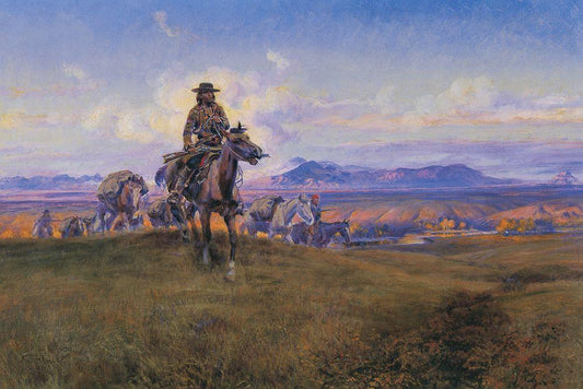 Bringing Home the Meat White Modern Wood Framed Art Print with Double Matting by Russell, Charles Marion