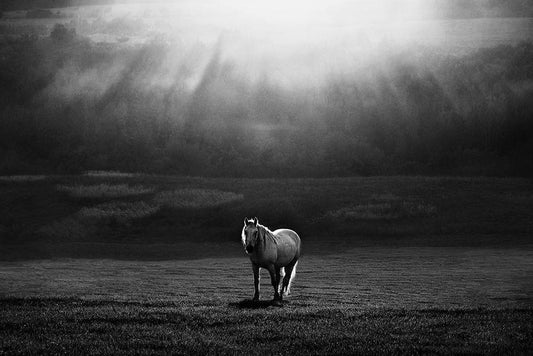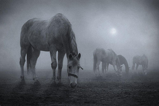 Horses in the Fog White Modern Wood Framed Art Print with Double Matting by Wallberg, Allan