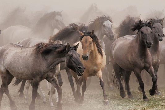 Wildhorses White Modern Wood Framed Art Print with Double Matting by Uhlig, Dieter