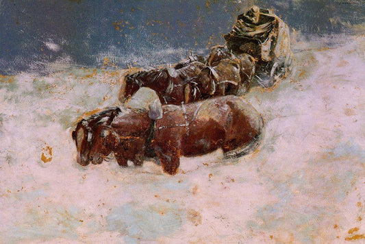 A Snowbound Christmas on the Overland Coach White Modern Wood Framed Art Print with Double Matting by Remington, Frederic