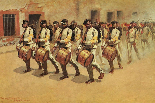 Drum Corps-Mexican Army White Modern Wood Framed Art Print with Double Matting by Remington, Frederic