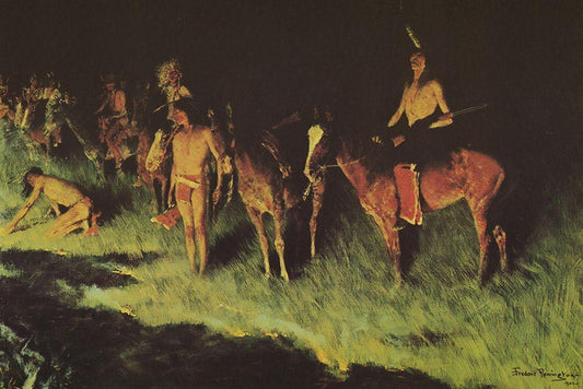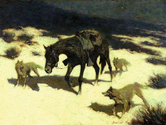 Hungry Moon White Modern Wood Framed Art Print with Double Matting by Remington, Frederic