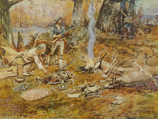 The Wolfers Camp White Modern Wood Framed Art Print with Double Matting by Russell, Charles Marion
