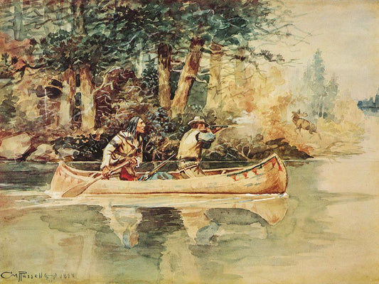 Shooting a Spy White Modern Wood Framed Art Print with Double Matting by Russell, Charles Marion