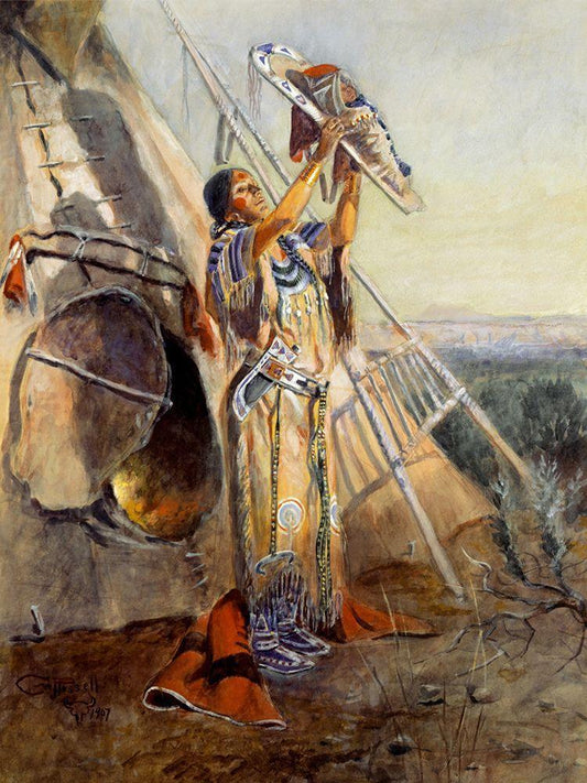 Sun Worship in Montana White Modern Wood Framed Art Print with Double Matting by Russell, Charles Marion