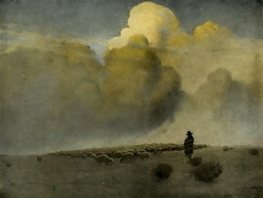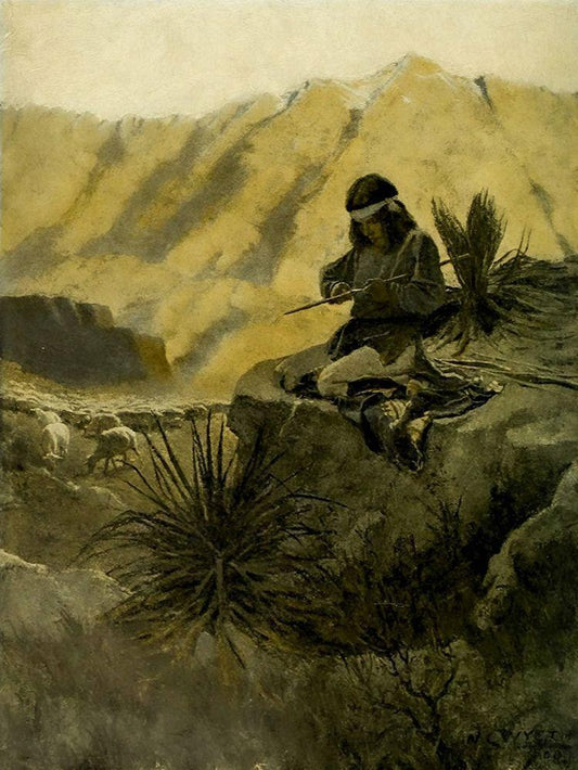 Navajo herder in the foothills White Modern Wood Framed Art Print with Double Matting by Wyeth, Newell