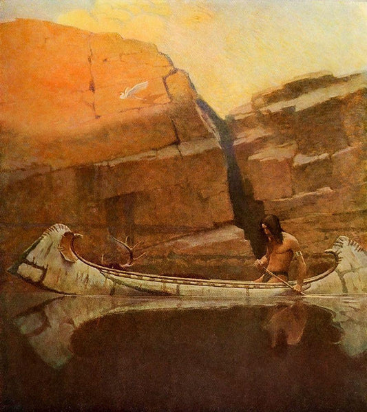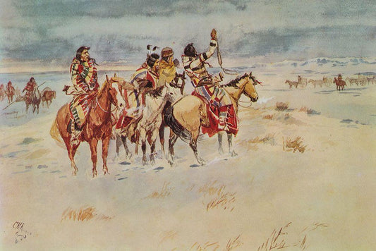 Indians Hailing Immigrants White Modern Wood Framed Art Print with Double Matting by Russell, Charles Marion