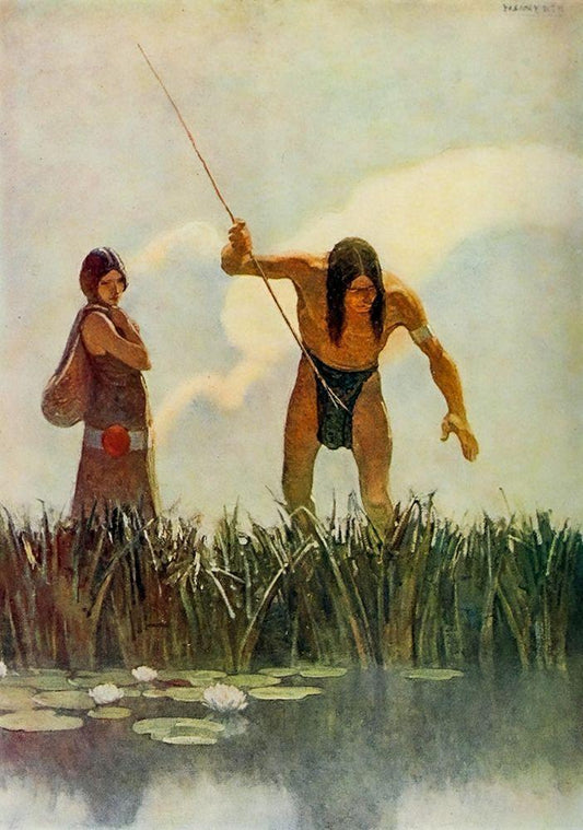 A primitive spearman White Modern Wood Framed Art Print with Double Matting by Wyeth, Newell