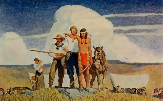 Pioneers-the opening of the prairies White Modern Wood Framed Art Print with Double Matting by Wyeth, Newell
