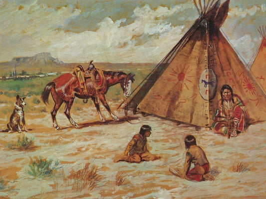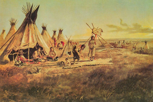 Breaking Camp White Modern Wood Framed Art Print with Double Matting by Russell, Charles Marion