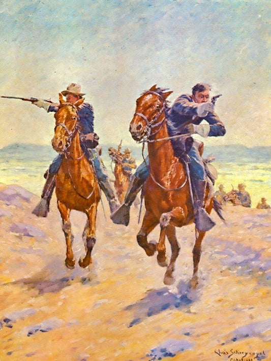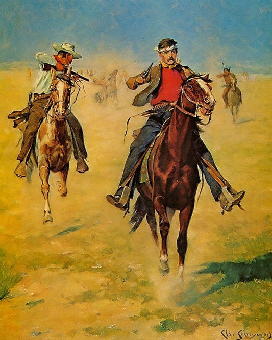 Troopers in Pursuit White Modern Wood Framed Art Print with Double Matting by Shreyvogel, Charles