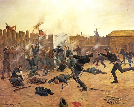 Defending the Stockade White Modern Wood Framed Art Print with Double Matting by Shreyvogel, Charles