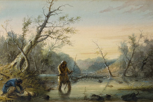 Trappers White Modern Wood Framed Art Print with Double Matting by Miller, Alfred Jacob