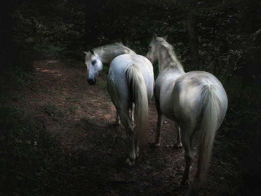 Horse and Mule White Modern Wood Framed Art Print with Double Matting by Vest, Christopher