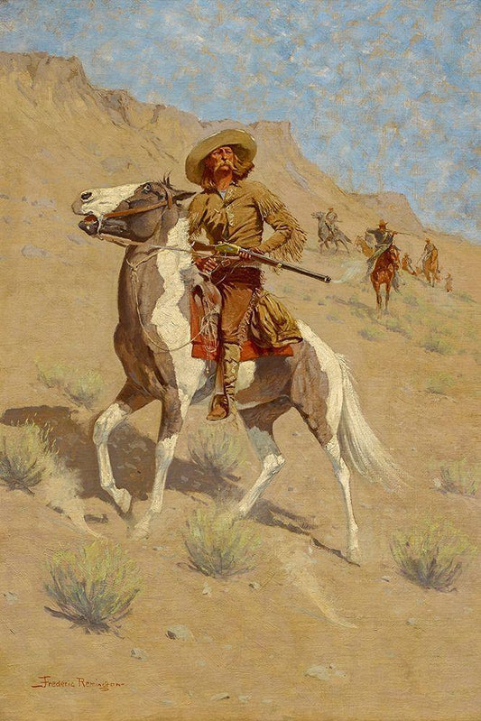 The Lookout White Modern Wood Framed Art Print with Double Matting by Remington, Frederic