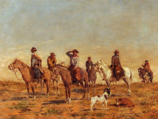 Cowboys White Modern Wood Framed Art Print with Double Matting by Valle, Angel della