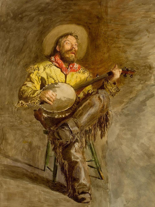 The Singing Cowboy White Modern Wood Framed Art Print with Double Matting by Eakins, Thomas