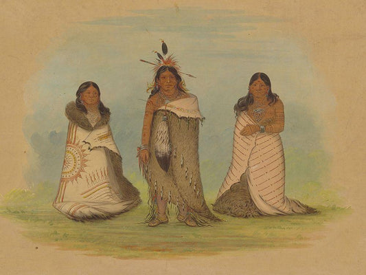 Three Riccarree Indians, 1861 White Modern Wood Framed Art Print with Double Matting by Catlin, George