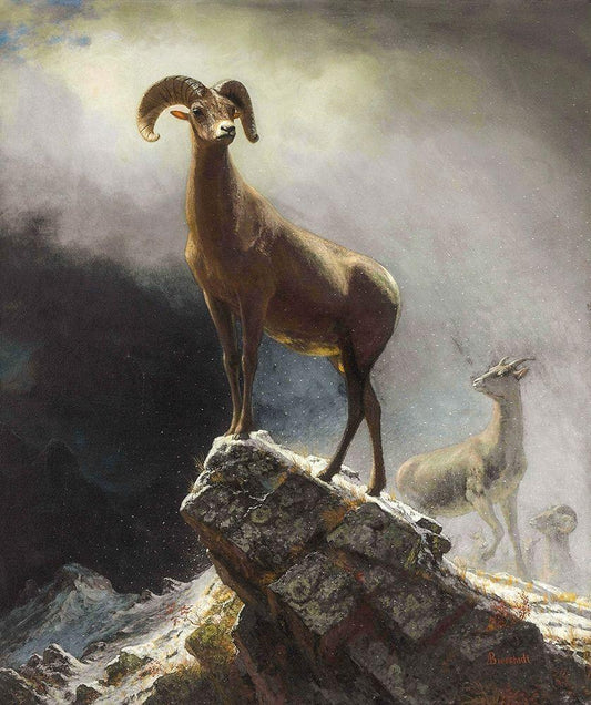 Rocky Mountain Sheep or Big Horn, Ovis, Montana White Modern Wood Framed Art Print with Double Matting by Bierstadt, Albert